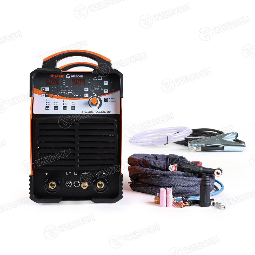 - Máy hàn TIG xung 315PAC/DC sử dụng dòng điện xoay chiều ba pha đầu vào có khả năng hàn nhôm dày đến 15mm thích hợp sử dụng tại các khu công nghiệp hoặc công trường có yêu cầu cường độ làm việc cao. Ngoài hàn nhôm máy còn có tính năng hàn que, có thể sử dụng các loại quen hàn cơ bản cho máy này.